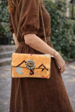 Pochette kilim berbère, issue de l’artisanat marocain, fabriquée entièrement à la main.