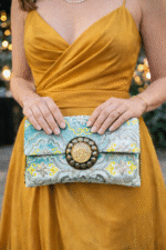 Pochette kilim berbère brodé, issue de l’artisanat marocain, fabriquée entièrement à la main.